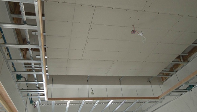 2.弹线上钉,保证石膏板受力均匀,吊顶无阴影;